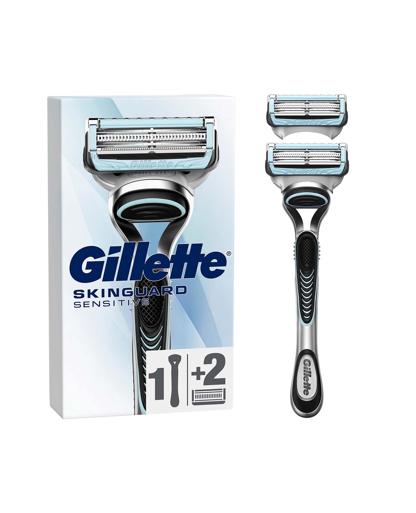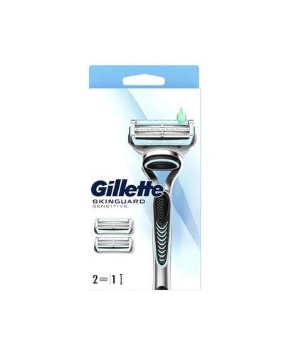 Gillette SkinGuard Sensitive Razor for Men with 1 Handle + 2 Blade Refills – Designed for Sensitive Skin to Prevent Razor Bumps and Irritation – With Lubrastrip and Precision Trimmer