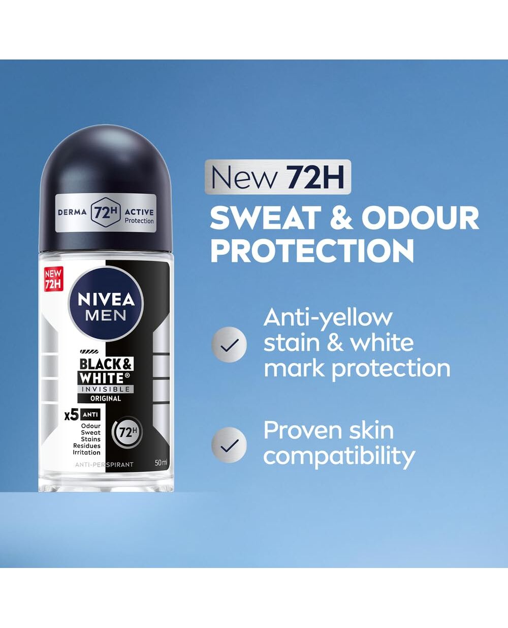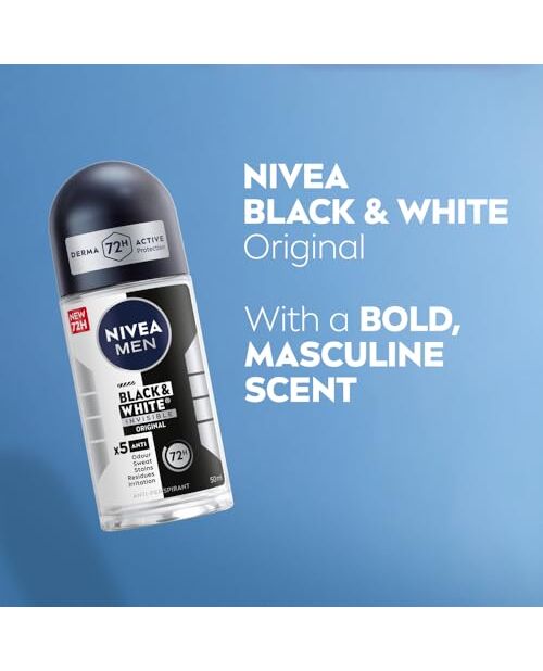 NIVEA MEN Antiperspirant Roll-on for Men, Black & White Invisible Protection Original, 50ml