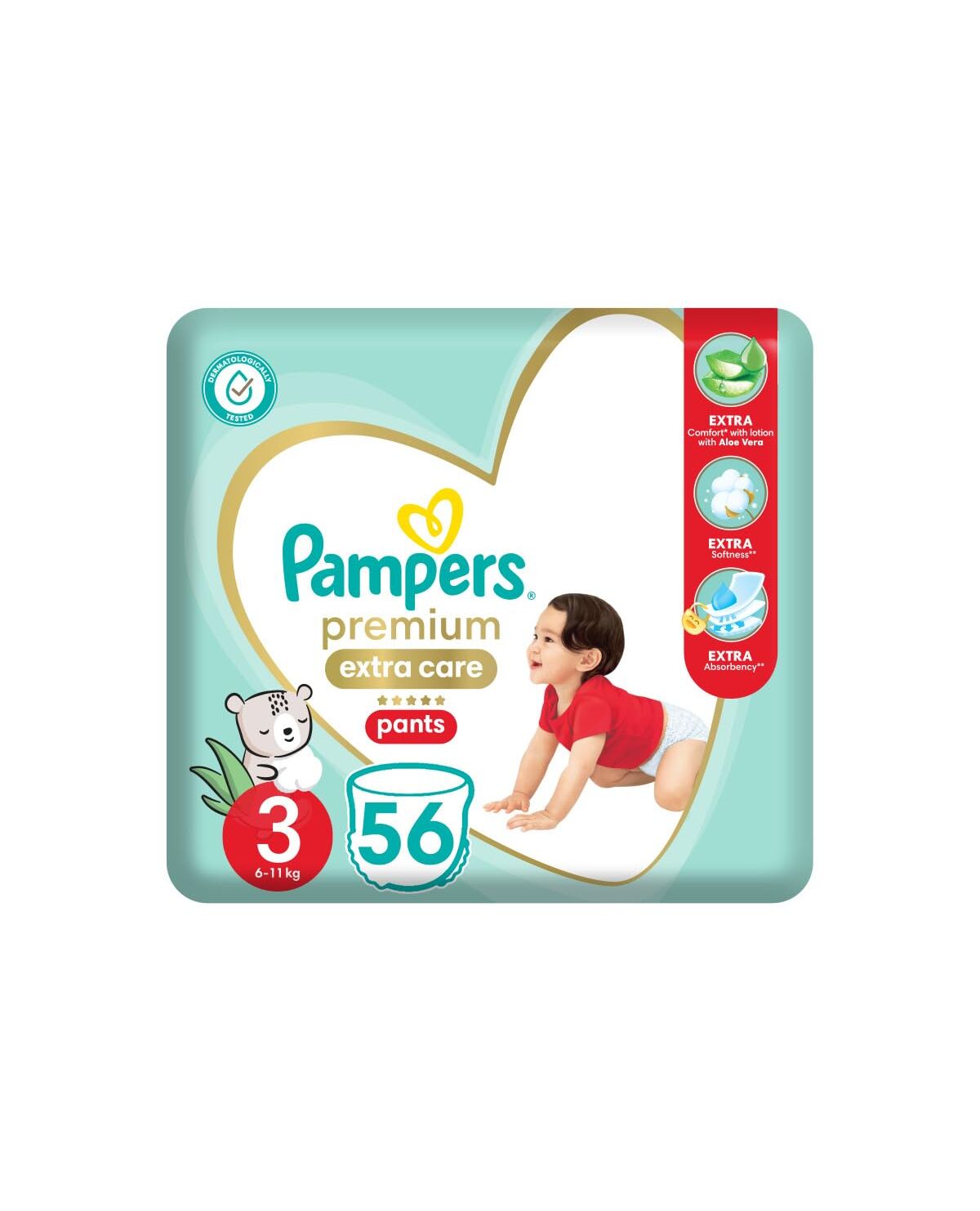 Pampers Premium Extra Care Pants, Size 3, 6-11kg, with lotion with aloe vera, 56 diapers. (Pack may vary)